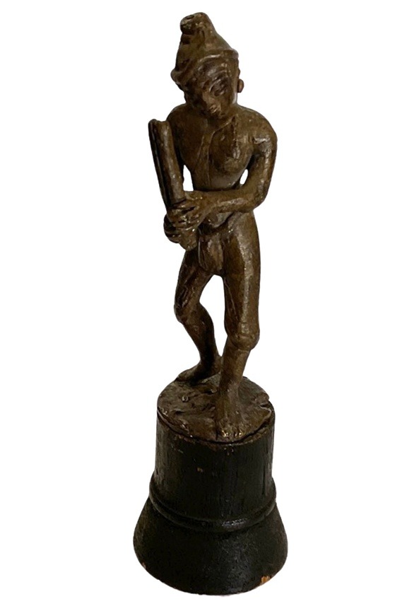 Statue, bronze chinese man playing instrument
