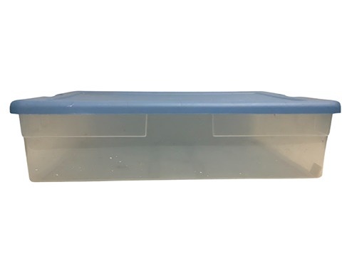 rectangle shape, includes blue lid, empty.