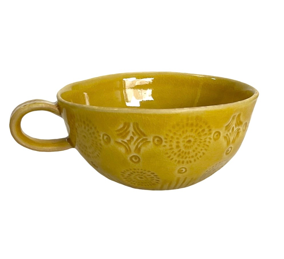 Mug; Stoneware, Ochre yellow crackle glaze,