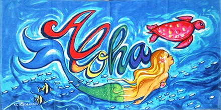 Beach towel; CLEARED Mermaid swimming with turtle, Aloha