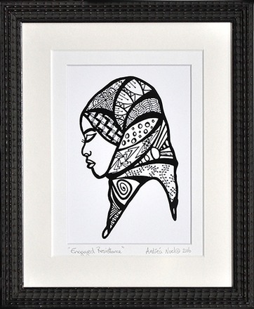 Cleared Print on paper of woman, woman with head scarf