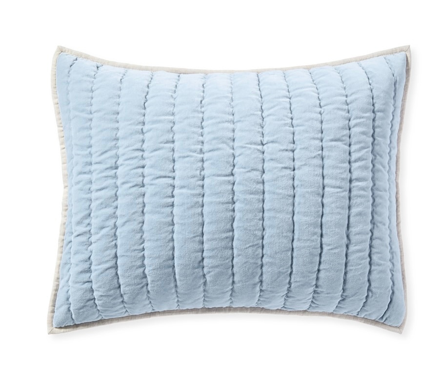 Standard Sham; Velvet, Coast Blue front with beige trim,