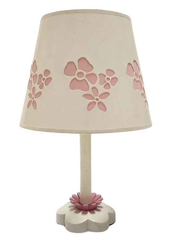 Table Lamp Base; wood white candlestick with cut out pink daisy