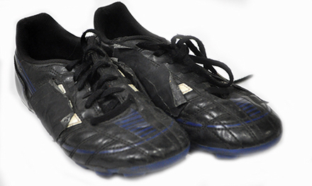 out door, black & blue, white lines - Adidas. Size: 4 youth