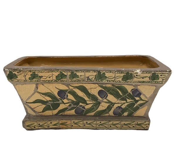 Planter; Pottery, Cream, Crackle glaze, Painted olive branch