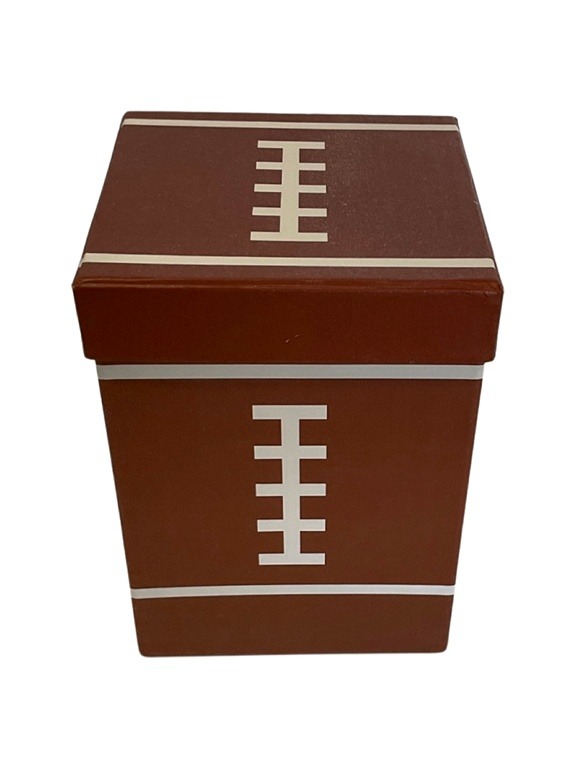 Box; cardboard, brown & white football style