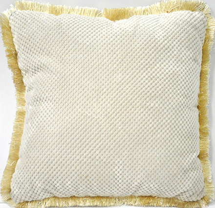 honey comb patter, yellow fringe around edge, size: 18" x 18"