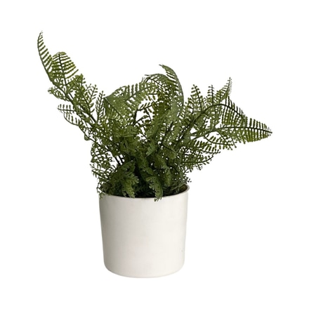 Potted Plant; Faux, Green fern, in white acrylic pot,